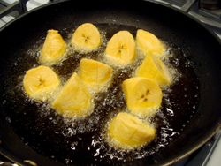 They’re a bit crunchy on the outside (especially with really ripe ones), and gooey inside when fresh from the frying pan (caution: they’re obviously blazing hot too!).