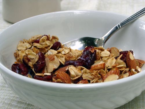 I'm a simple girl, so store bought granola—even the high-end bakery stuff, never quite measures up. Check the coconut and wacky flavors at the kitchen door, and leave the clusters there too. Oats, nuts, dried cranberries or raisins with just a touch of sweetness is what I want. The baby loves oatmeal, so I usually always have old fashioned oats in the pantry. Skip the prepackaged ones and go to the bulk foods section of your market. At my local health food store, organic ones only cost $1.39 a pound (they used to be 99 cents until food prices skyrocketed). Dried cranberries and almonds are usually sold in bulk too. Keep those staples along with brown sugar, maple syrup, vanilla bean and cinnamon on hand and you'll be able to make homemade granola in the same time it takes to get dressed and go shopping for the packaged stuff.