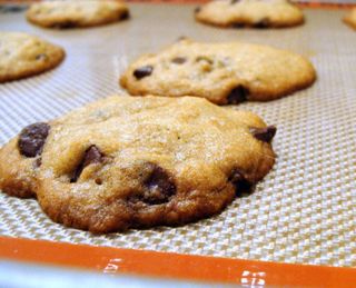 Add flour mixture and mix until dough is just combined and there is no visible flour remaining. Stir in chocolate chips. Drop by teaspoonfuls onto a lined baking sheet (I use silicon liners) . Bake for 10 minutes, until edges are golden. Remove from oven and let stand on sheet for 2 minutes. Transfer to a wire rack. Serve warm or cool completely and store in an airtight container for up to three days.