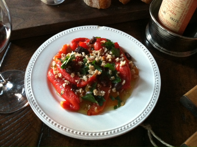 When I first made this salad, it was to accompany a hearty beef stew. The second time, I used it to bulk up a simple lunch of sunny-side up eggs. I’ve since taken to using Luisa’s method for roasting peppers, and keep a jar of them in my fridge. I added a smidge to my ribolitta today, and the night before tossed some strips into a noodle stir-fry. Slow-roasted bell peppers are definitely something I’m adding to my “must-have” fridge pantry.