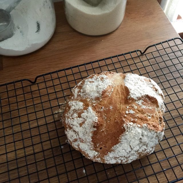 In my search for a traditional Irish soda bread recipe (remember I made this oat soda bread a few years ago), I came upon this site called The Preservation for Irish Soda Bread Society. After delving in a bit, I knew I had to stay somewhat true to tradition. You’ll notice my recipe below isn’t the sweet teacake kind being sold in most bakeries at this very moment. My recipe is more of an everyday bread that you can enjoy lightly toasted, with a smear of butter, and jam, if you like. It still isn’t quite a sandwich bread. I imagine my kids would blow a gasket if I tried to tuck a few slices of turkey between it. Still, it’s a nice counterpart to the fruit and egg enriched recipes out there. Hope you enjoy it as much as I’ve been. Now time to go pack those lunches, and get the kiddos out the door. Have a great day everyone!