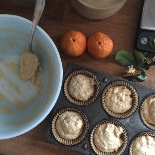 Come Saturday morning, I woke rather early, at least early for me on a weekend. That baking mojo I thought I lost? Turns out it was here all along. The sunshine streaming into my tiny kitchen beckoned me to the stove. My thoughts wandered to the mandarins I bought, mistaking them for satsumas. I decided to turn them into muffins. I set out baking as I generally do when approaching it from a recreational perspective. It was all loosy goosy, and all by weight. I loathe measuring cups at this point, and only use them for my professional work.