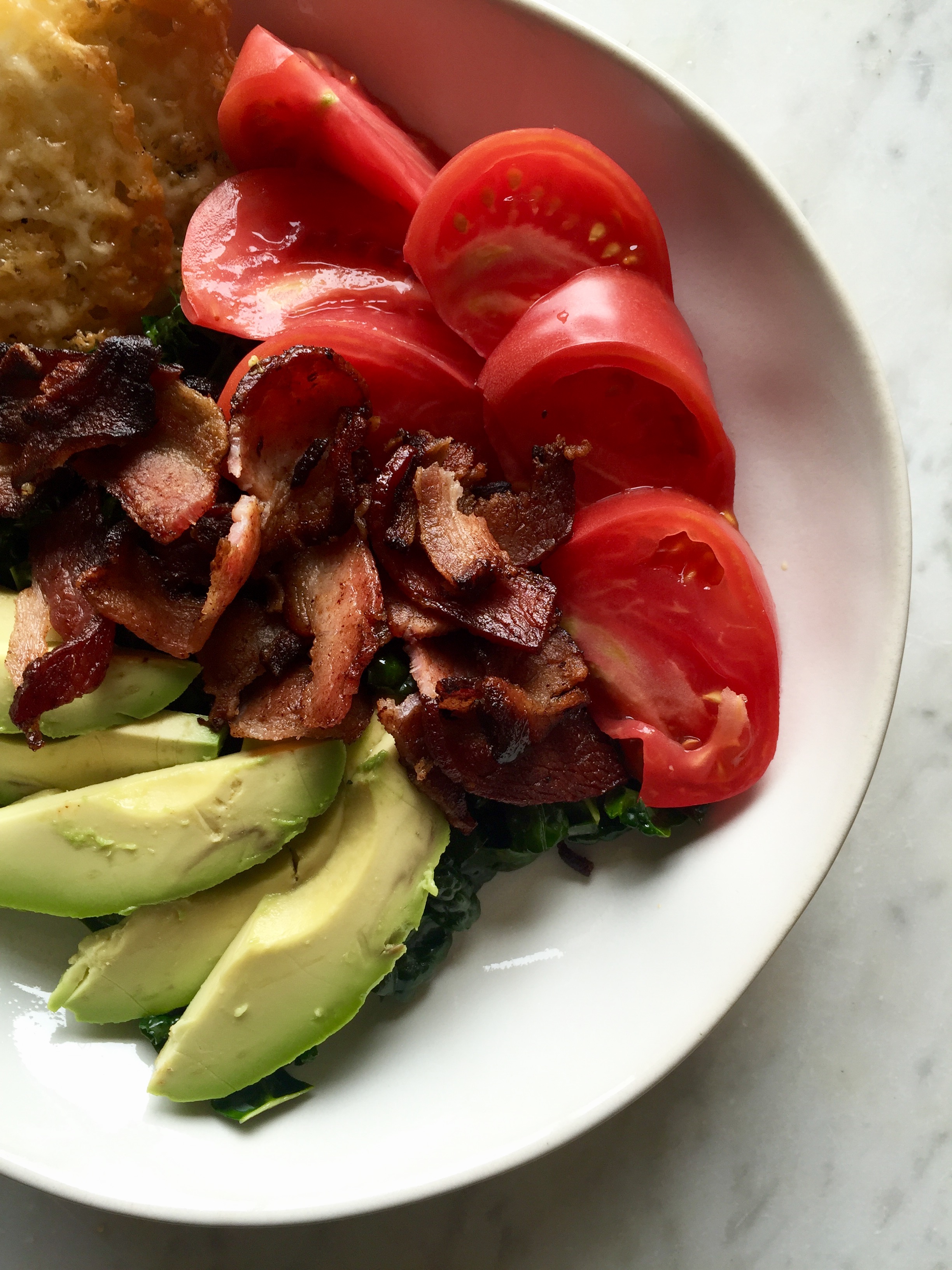 So, if you follow along on Facebook, then this BLT salad will look familiar. I shared a sneak peek at the video a couple of weeks ago just after making it on Snapchat. If you’re not a fan of my Facebook page, then this salad is just the reason you should be (psst: click here to like it). Just think, for two whole weeks you could’ve already been enjoying the recipe.