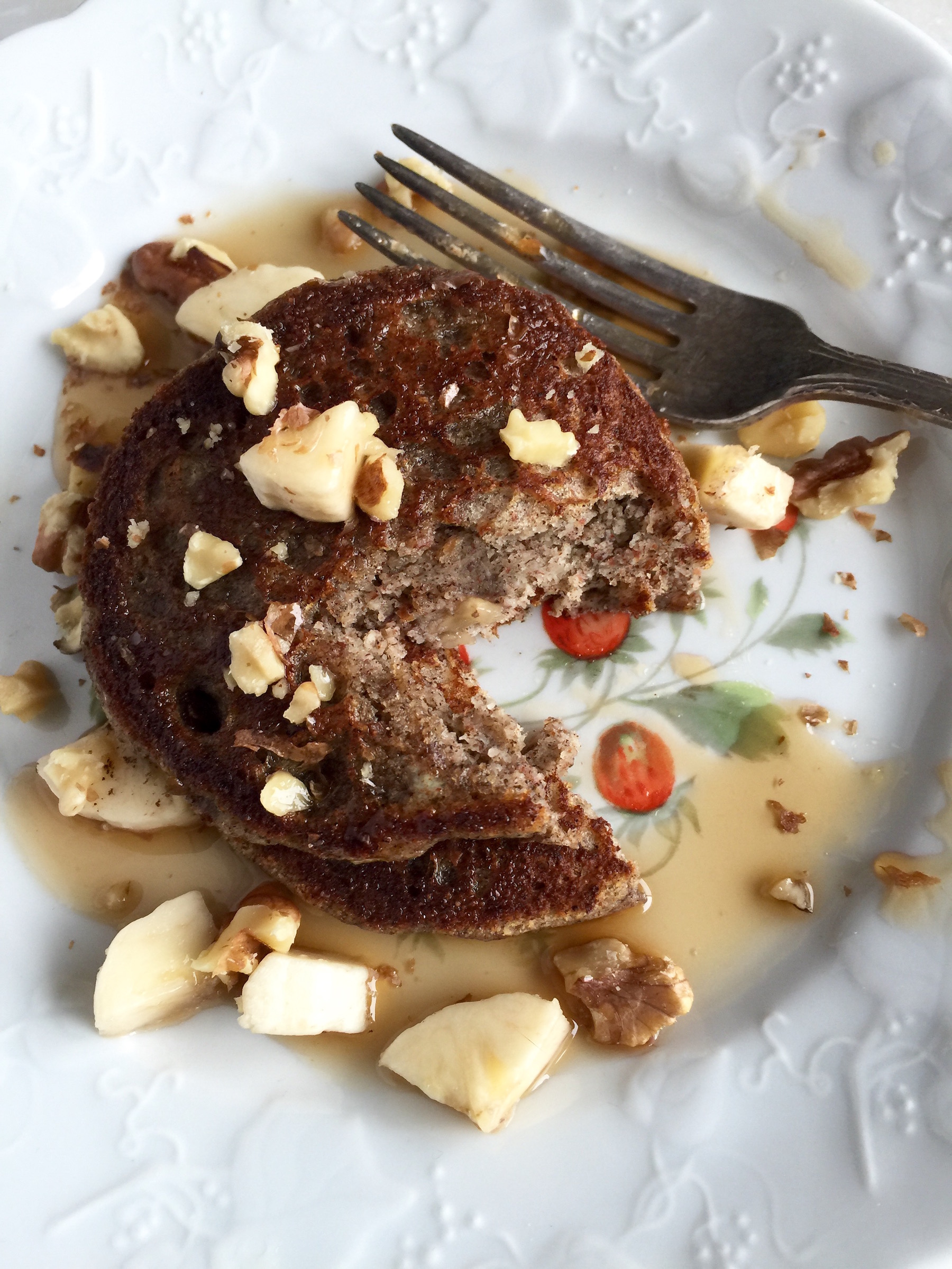 Buckwheat Almond Pancakes with Bananas & Toasted Walnuts
