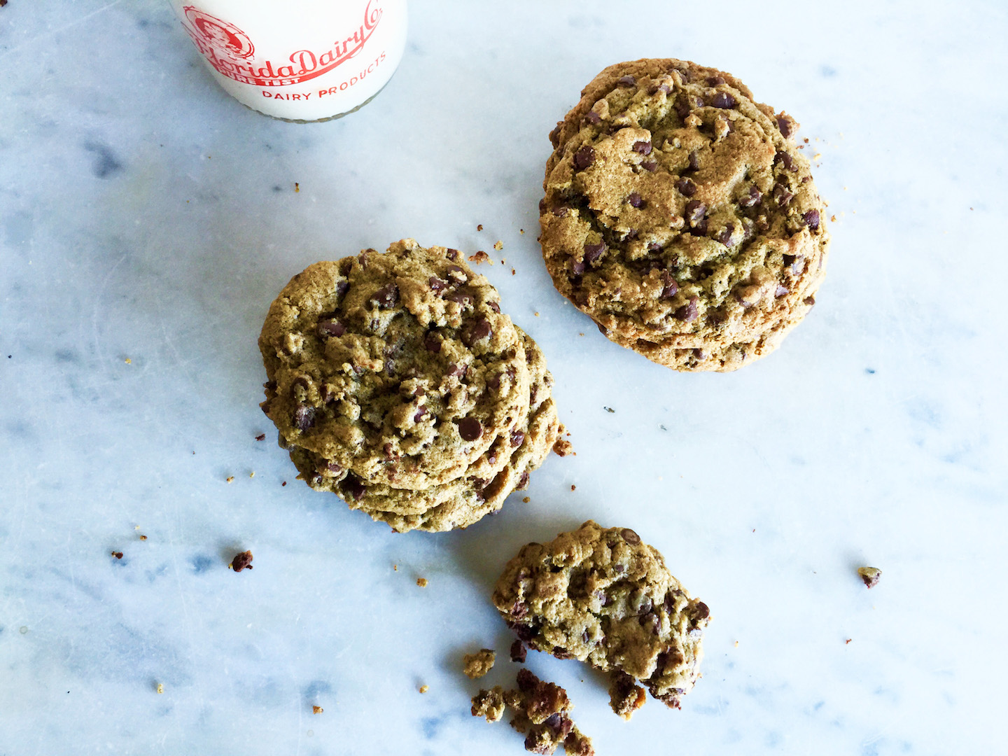 I usually buy ghiradelli chips (semi or bittersweet), Lily’s, or chop up some guittard 55% chocolate discs. While testing this recipe, I decided to give them a try with mini chips. Bingo. Honestly, who would’ve guessed it was the size of the chip all these years that deterred her from liking chocolate chip cookies? It’s hard to find a brand of minis that I like, but with some effort you can buy them from Ghirardelli and this dairy free, nut free version from Enjoy Life.