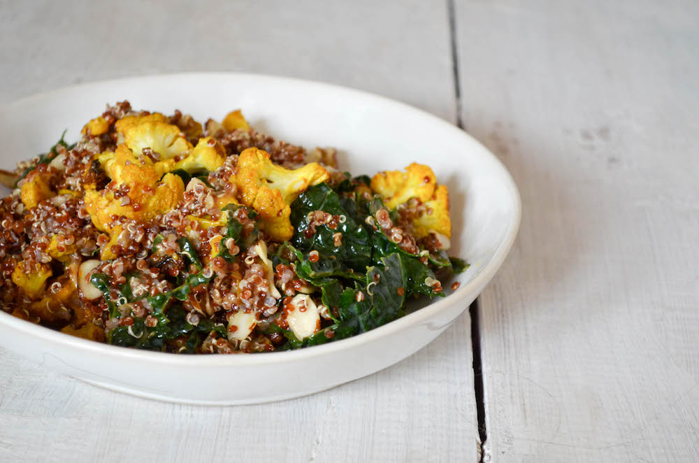 I’m even developing an amicable relationship quinoa, so there’s hope for me yet. I’ve been obsessed with cauliflower, and love drinking this turmeric tea, but it never occurred to me to combine the two until I saw a photo on Pinterest last week.