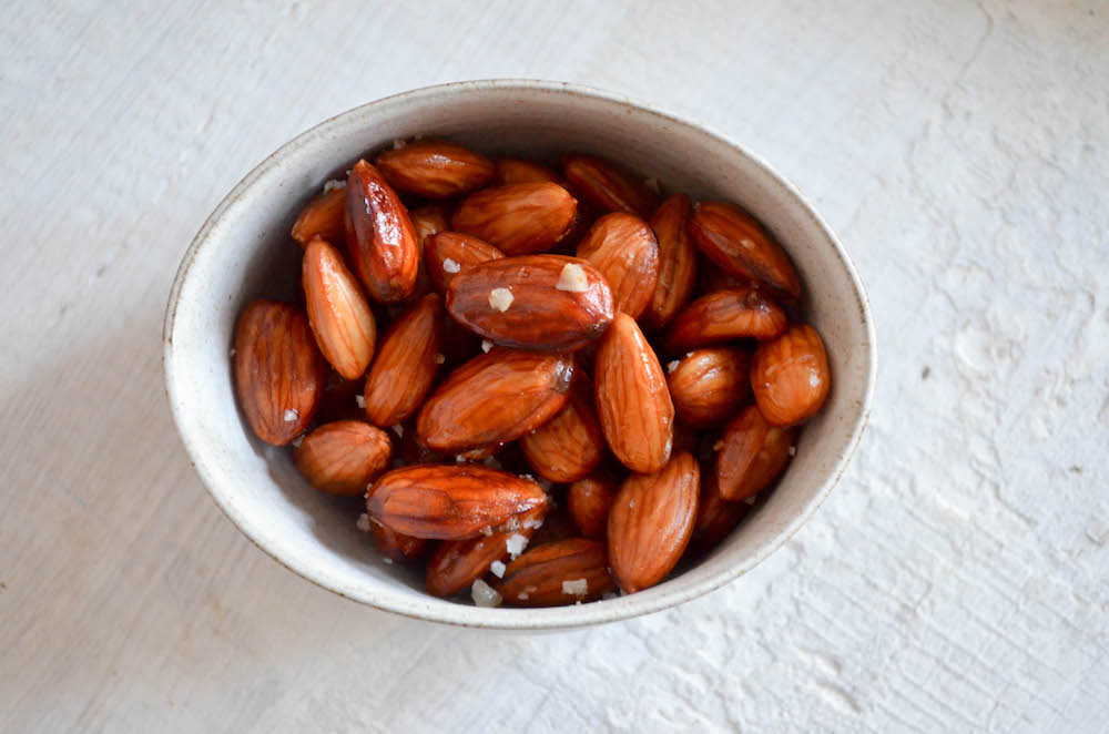 Almonds are a no brainer snack, and a great on the go food. I keep a tin in the car for road trips, or those times when I run out of the house and have been too busy to actually eat (I try to avoid this, but life happens). My relationship with them has been an on-off one, though. Eating on consecutive days would sometimes cause a stomachache. This always baffled me a bit until I discovered how to make the best roasted almonds ever.