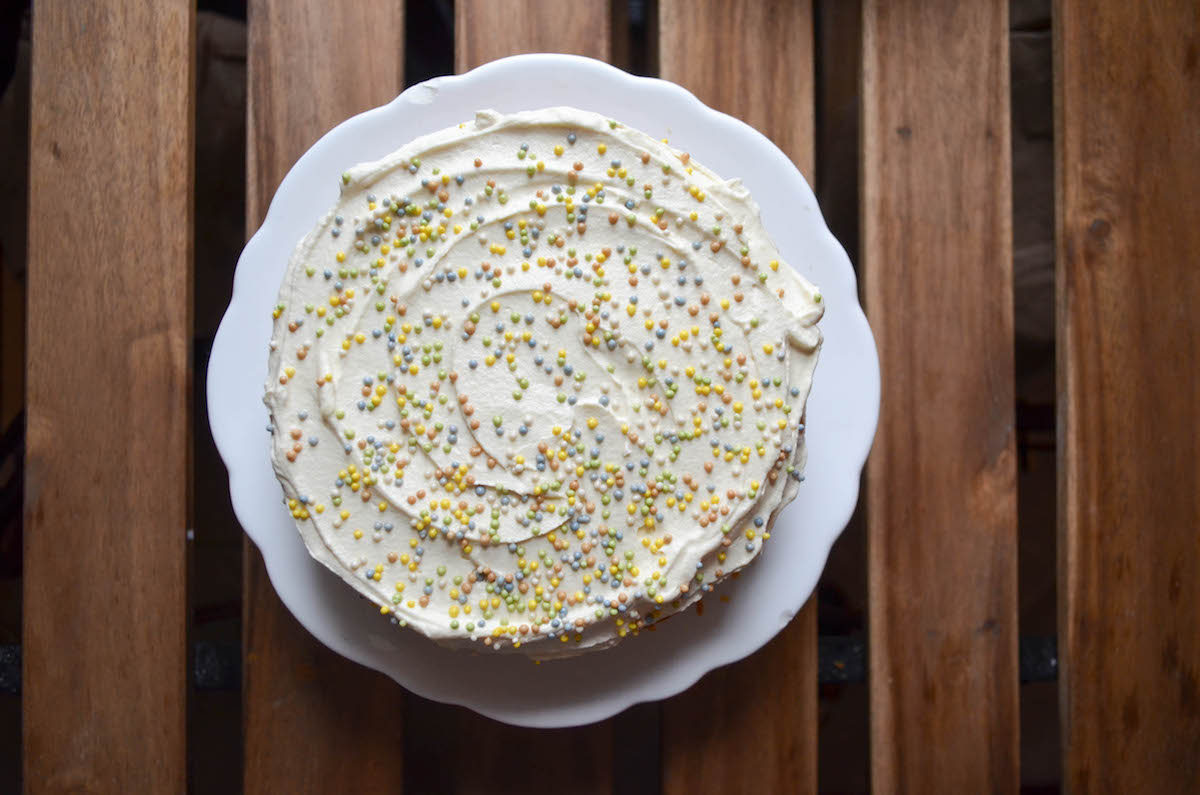 This is a nice alternative to overly sweet frosting, laced with confectioner’s sugar, and instead sweetened with just a bit of maple syrup. I wasn’t sure it would be sweet enough for the kids’ tastes, but they loved it. Feel free to adjust the syrup as you like, and I bet agave would work, too, if that’s what you prefer. I used this to frost a pumpkin layer cake that still needs some work before I can share it here. Stay tuned for more on that soon.