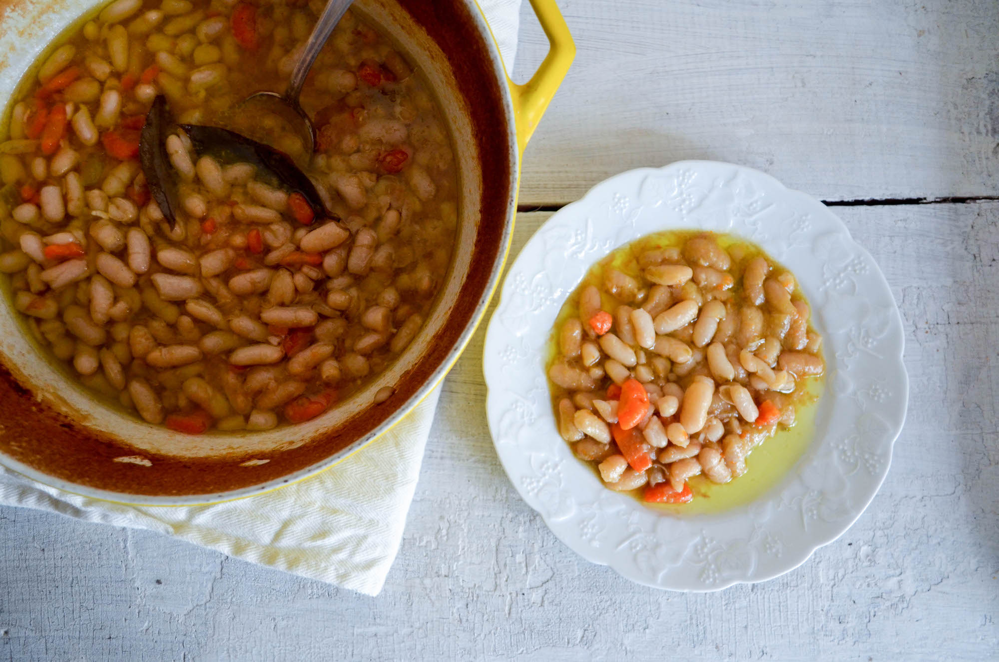 I’ve been wanting to share the recipe for these braised white beans since coming home from Europe six weeks ago. Has it really been that short, yet that long a time since our vacation? Time is such a fickle friend, the moments you love seeming to rush, while the more mundane and sad ones linger on like the last guest at a party that can’t take a subtle hint.