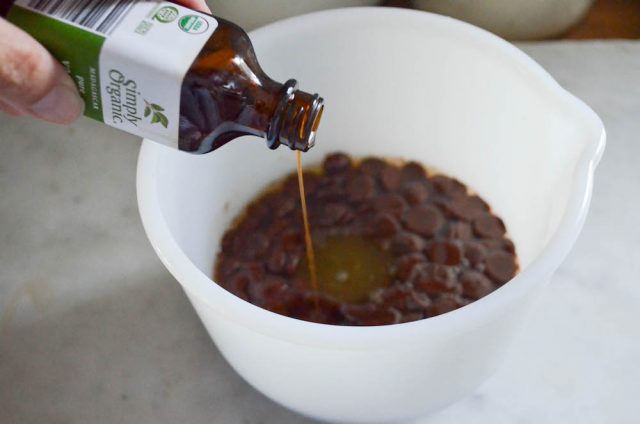 Let this mixture sit for a minute or two, just enough time for the chocolate to begin to melt. Then in goes some vanilla extract and brown rice syrup. Brown rice syrup is a better for you alternative to corn syrup. It’s easy to find at any healthfood store. The syrup is what lends the thick, fudgy body to this Hot Fudge Sauce.