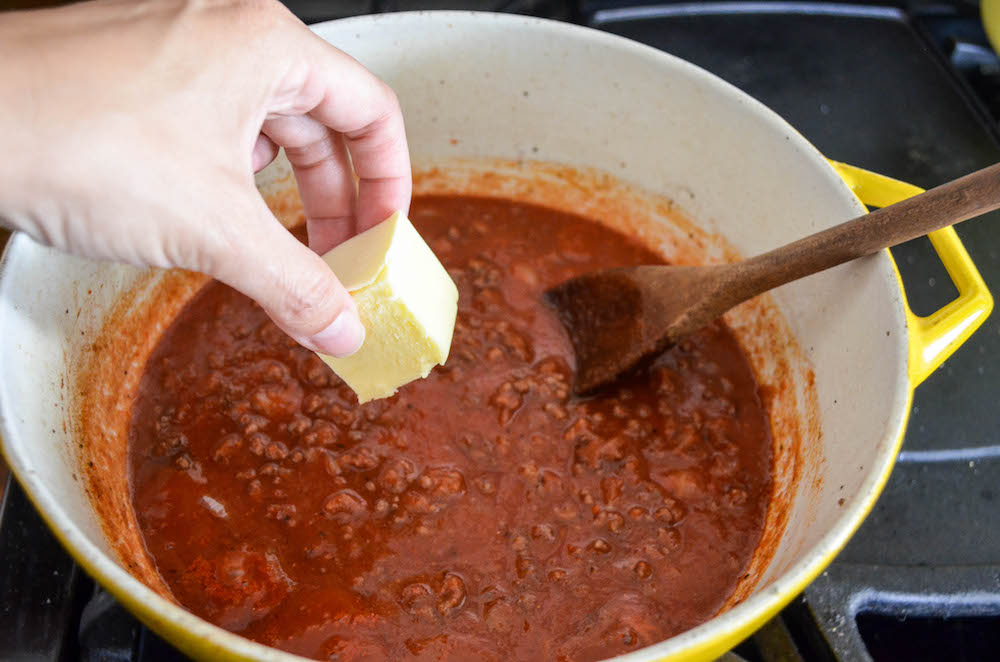 Some of you might be wondering if this can be made entirely in the slow cooker. Kind of. Unless your slow cooker has a browning function, you’ll need to start it off in a skillet on the stove top, then transfer the meat sauce to the slow cooker. At that point you can let it go all day on the low setting, or cook 3 to 4 hours on the high setting.