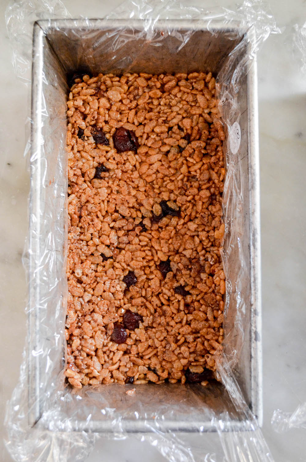 The idea for them came from the Marley Spoon event I attended last week. The staff there shared a basic recipe for DIY cereal bars which is basically 3 cups cereal, 3/4 cup add-ins (nuts, dried fruit, chocolate chips, etc.), and then a combination of sugars (both solid form i.e. cane sugar, and liquid form i.e. honey, agave, or brown rice syrup). This is my riff on that basic recipe, which ended up being dairy-free, gluten-free, and nut-free.
