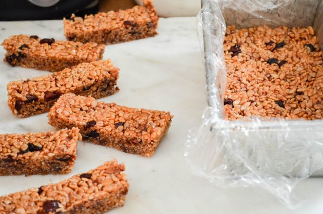 I spent Monday morning trying to prep for the week, and imagining what our new rhythms will be like once school starts on Thursday. I keep reflecting on our year of homeschooling, and it’s only in the last week or two that I realize just how fast it really went by. That weighed on my mind while making these Crisped Rice Snack Bars, a treat I packed in their lunch boxes on this morning.