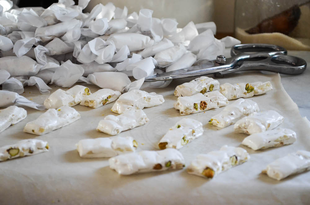 Nougat is one of Virginia’s most favorite candies in the world. I’m not even sure how this fascination with it started. Maybe on one of our trips to France? Or Montreal? Anyway, she was hooked from the first bite. She begs me to buy it whenever we go back to our old Brooklyn neighborhood, where nougat is abundant at the Italian pastry shop and salumeria, under its Italian name, torrone. It’s a very classic Christmas treat.