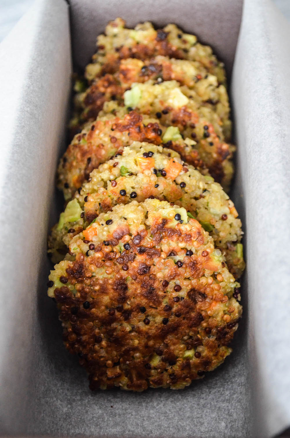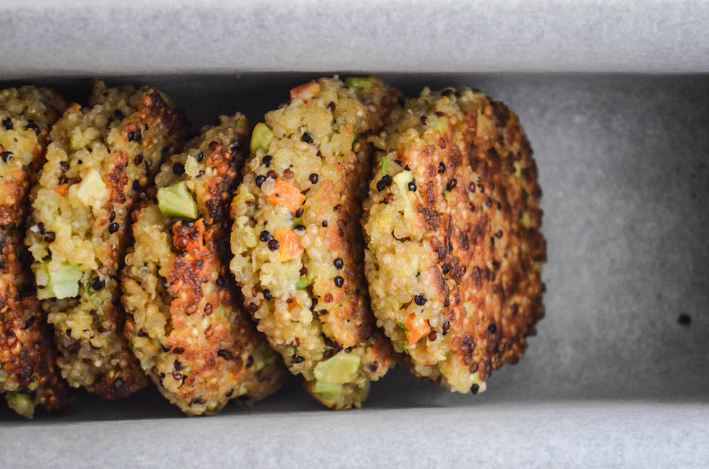 I went light on the cumin, so it’s more of a whisper here. If you want really bold flavors, up the cumin to ½ teaspoon, and I think red pepper flakes, or even smoked paprika would be nice here. I might try them this way next time I make a batch. Best part? These taste amazing hot or at room temperature, so take them straight from the fridge, and pack them in your kiddo’s lunchbox—or your’s if you bring lunch to work, as I do on days when I substitute teach. On one such occasion one of my kindergarten students asked what I was eating, and said “I love quinoa!” I offered half a patty, and he loved it, which was the proverbial icing on the cake.