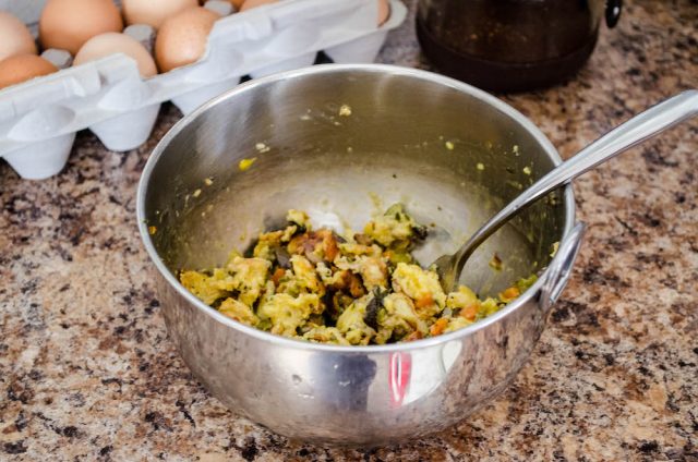 Mix them together in a bowl until the stuffing has mostly absorbed the egg. Scoop some into a hot waffle iron, and the house smells a little like Thanksgiving all over again. You can a big batch of them if you have plentiful leftovers, freeze them, and heat in the toaster as desired.