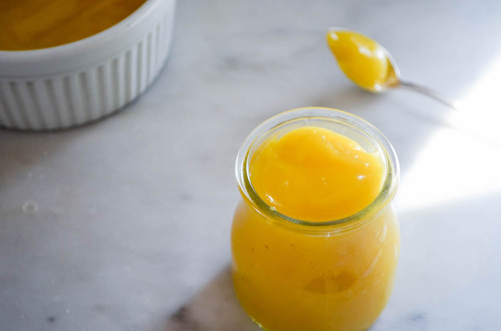- Once the pie crust has been baked, and completely cooled, spread the lemon curd into the bottom.