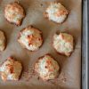- Preheat the oven to 350º F (180ºC). Line a sheet pan with parchment paper. Pour some sugar into a small bowl.