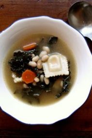 kale, white bean & ravioli soup